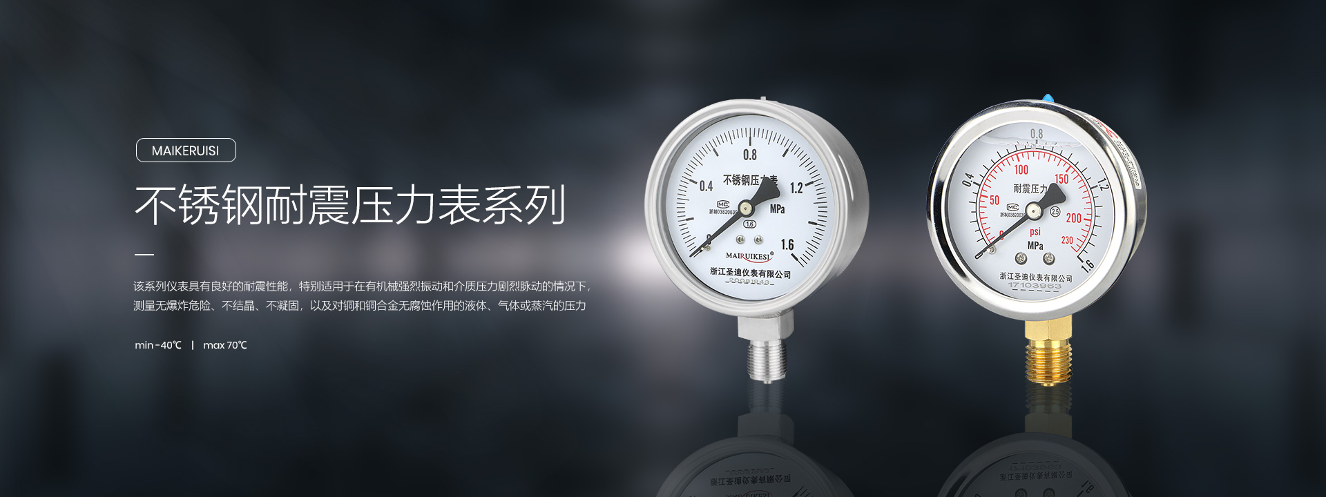 浙江圣迪儀表擁有先進的生產設備,完美的質檢儀器和齊全的模具加工設備,主要生產:生產壓力儀表、微差壓表、不銹鋼壓力表表閥、耐震電接點壓力表、電接點壓力表、卡箍式隔膜壓力表、不銹鋼壓力表、壓力變送器等產品,